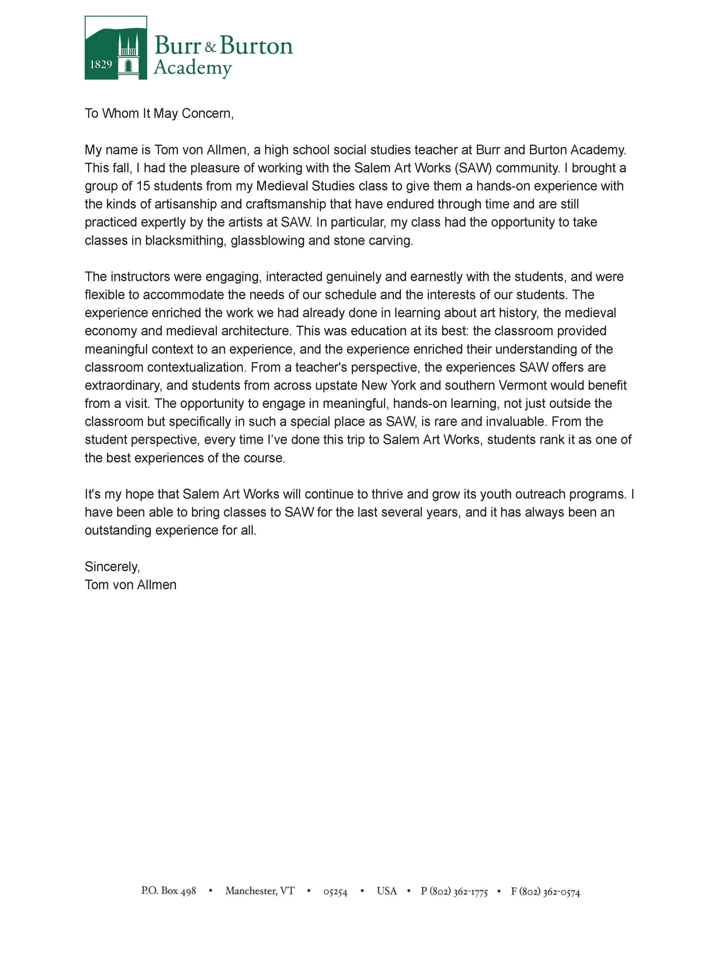 Letter of Support from Burr and Burton, 10/30/2024
